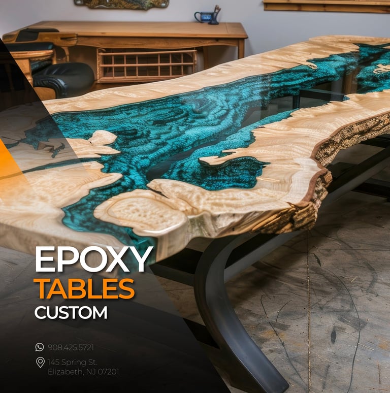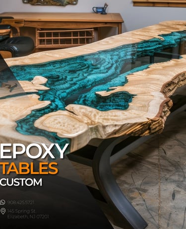 widely used in countertops and tables, epoxy offers a seamless and glossy finish that enhances both aesthetic appeal and functional durability. It is favored for its resistance to wear and chemicals.